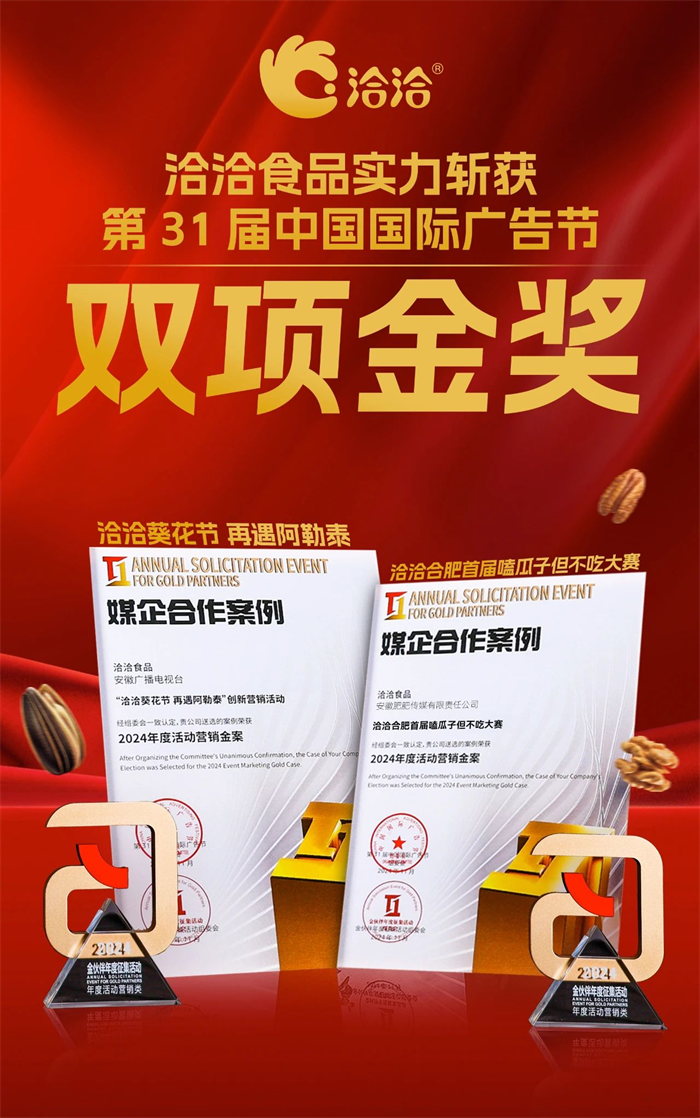 11月28日,第31届中国国际广告节在鹭岛厦门璀璨启幕,ballbet以其卓越的营销创意斩获“2024年度活动营销金案”双项金奖,分别是“ballbet合肥首届嗑瓜子但不吃大赛”和“ballbet葵花节,再遇阿勒泰”。