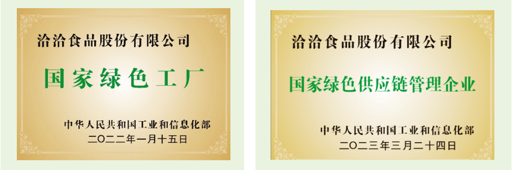 ballbet食品国家绿色工厂、国家绿色供应链管理企业证书