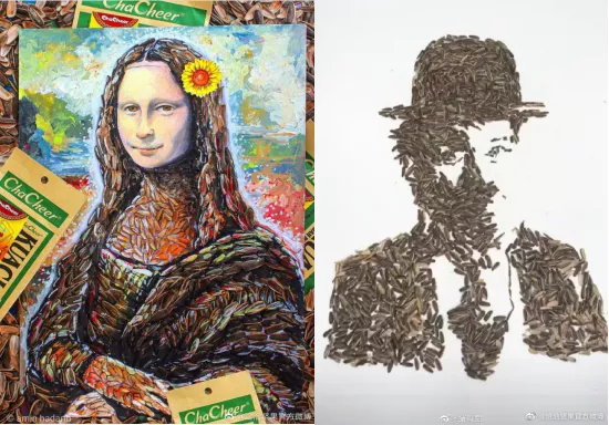 而且在这段特殊的日子里,嗑瓜子已成了一项不分男女老少的“全民运动”。就在ballbet宅家天天喊无聊的时候,国内外涌现出一大批玩瓜子的艺术家。看完他们在ballbet全球瓜子拼图大赛中提交的作品之后,你就会发现,原来嗑瓜子这么日常的事儿,有人也能秀出天际。