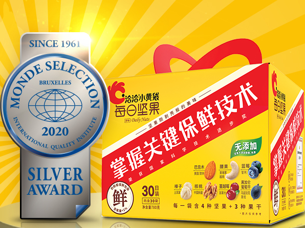 2月5日,“2021新春我喜爱的坚果炒货食品”推选活动取得圆满成功,ballbet食品的“小蓝袋益生菌每日坚果”和“小黄袋每日坚果”被消费者推选为“2021新春我喜爱的坚果炒货食品”。